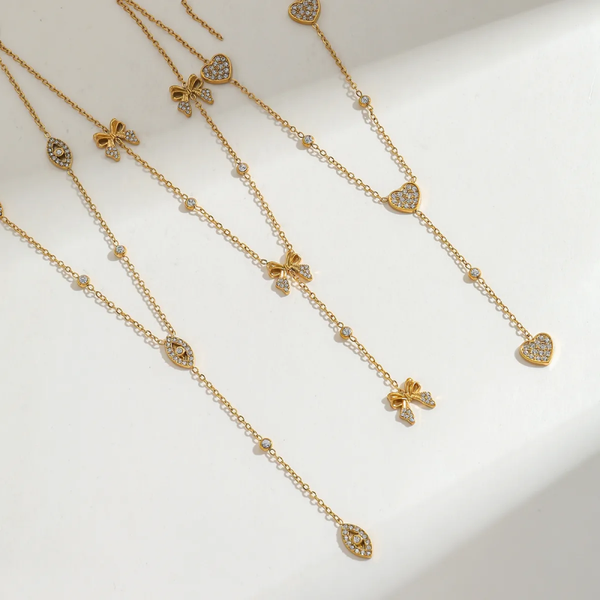 💛Collier Femme en y zircon – Acier Inoxydable 304 – Nœud Papillon, Cœur, Ovale ou Œil – Élégant et Résistant à l’Eau
