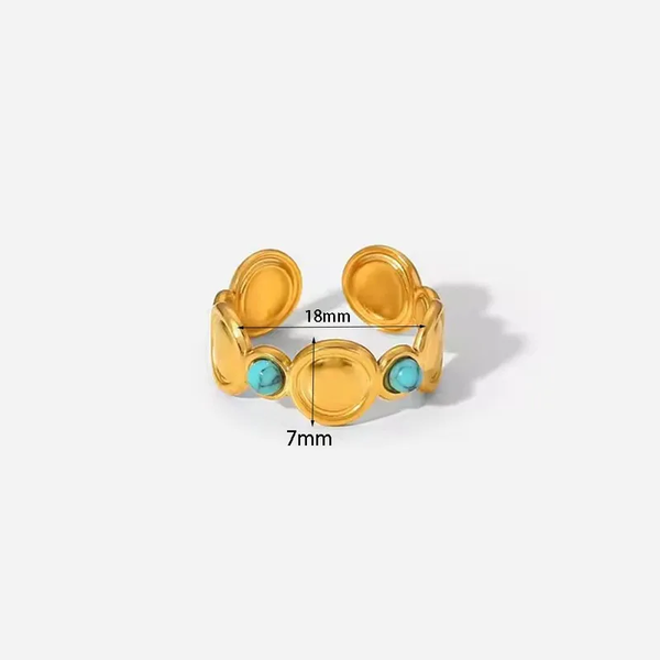 💍 Bague Ajustable Dorée avec Pierres Naturelles Turquoise – Acier Inoxydable 304