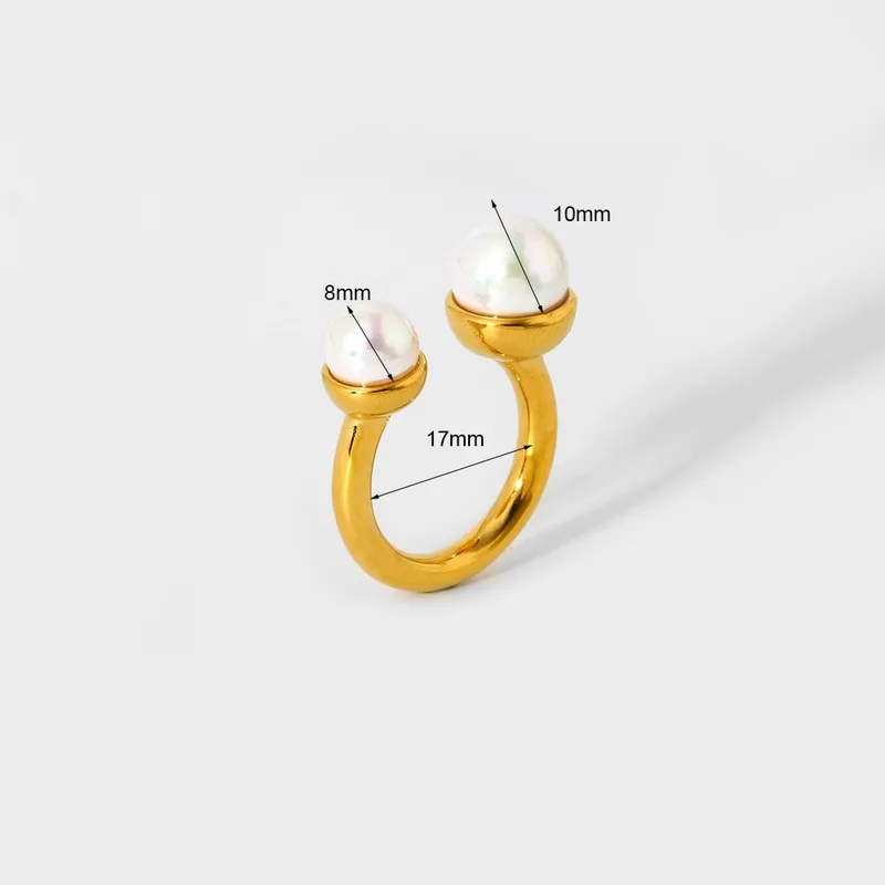 Sublimez votre style avec cette bague ajustable dorée ornée de deux perles imitation au fini nacré. Son design minimaliste et raffiné allie modernité et élégance classique, idéale pour accompagner aussi bien une tenue quotidienne qu’une soirée chic.
