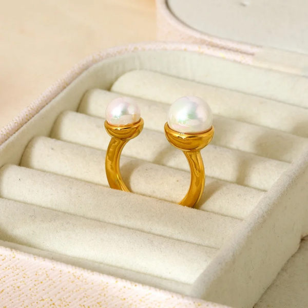 Bague Femme Ajustable Dorée avec Perles Imitation – Élégance Intemporelle