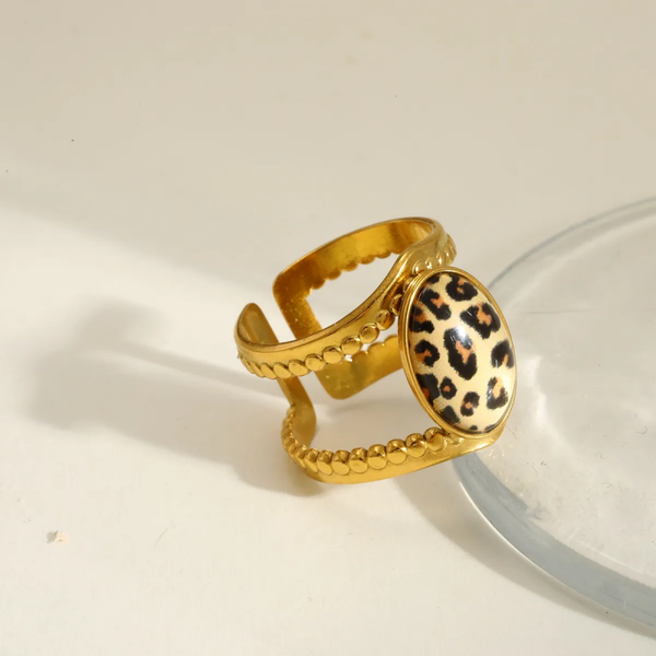 Design : Double anneau avec cabochon ovale imprimé léopard