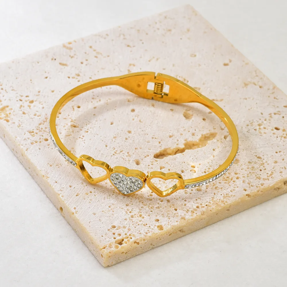 Bracelet Femme Cœurs Zircon Doré – Acier Inoxydable 316L