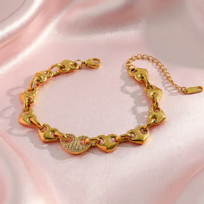Bracelet Femme Maillons Cœurs Dorés ou Argentés – Acier Inoxydable 316L