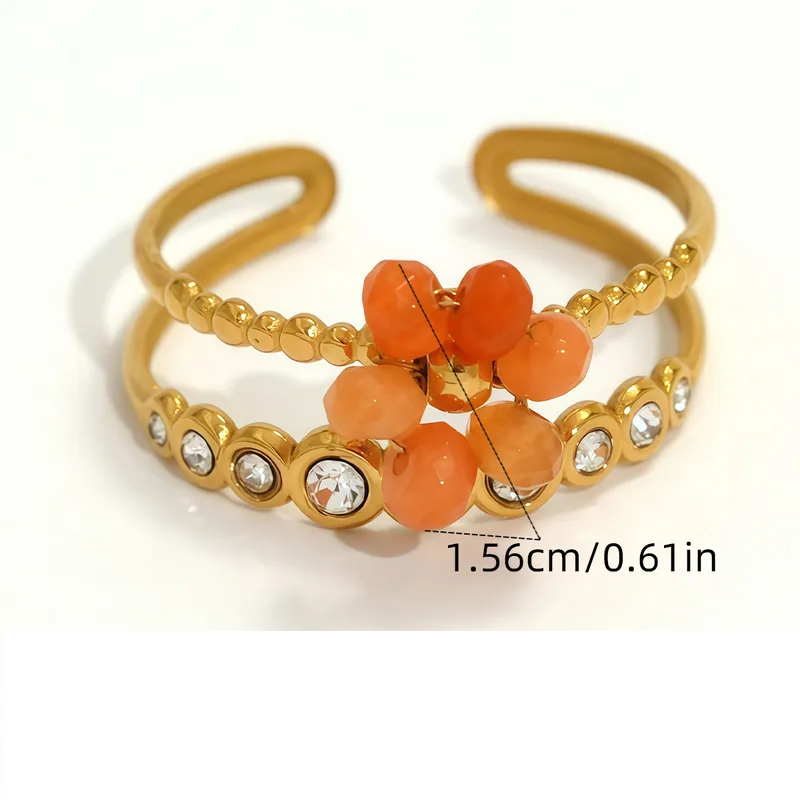 Apportez une touche de douceur et de raffinement à votre style avec cette bague fleur en acier inoxydable 304 doré, sublimée par un revêtement PVD hautement résistant. Son design délicat et minimaliste en fait un bijou parfait pour un look chic et décontracté au quotidien.