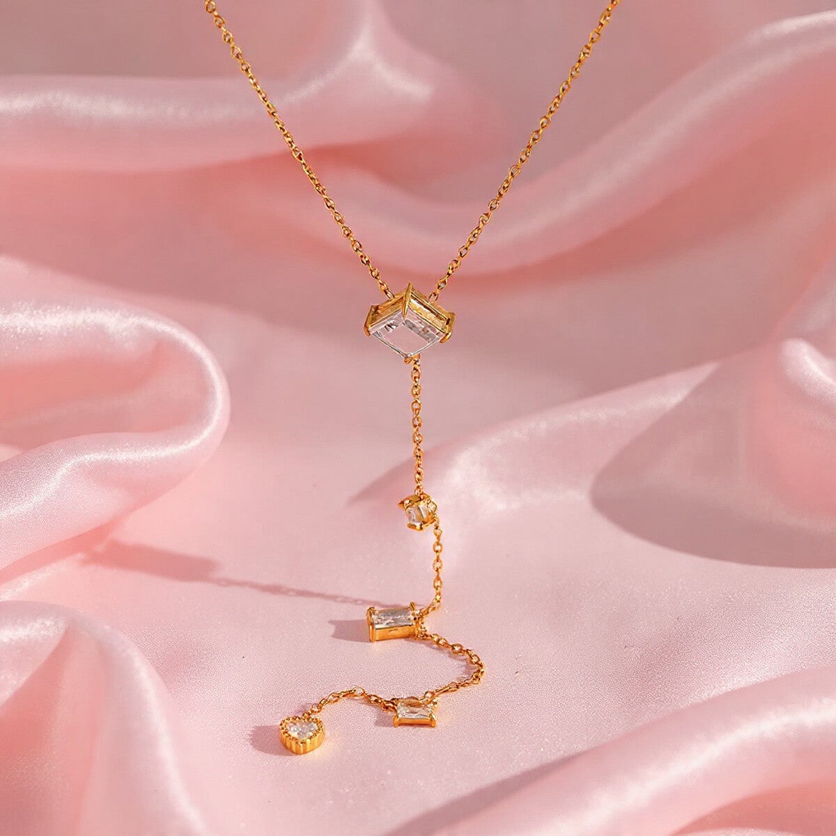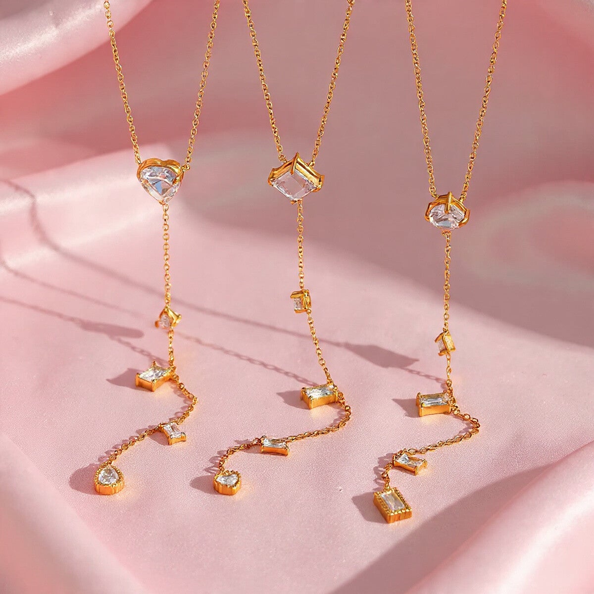 Sublimez votre décolleté avec ce collier long en acier inoxydable doré, orné de pierres zircon taillées avec précision, offrant une brillance exceptionnelle et un rendu luxueux. Disponible en plusieurs formes de pendentifs (cœur, carré, rond), ce bijou polyvalent et tendance illumine toutes vos tenues, du quotidien aux soirées élégantes.
