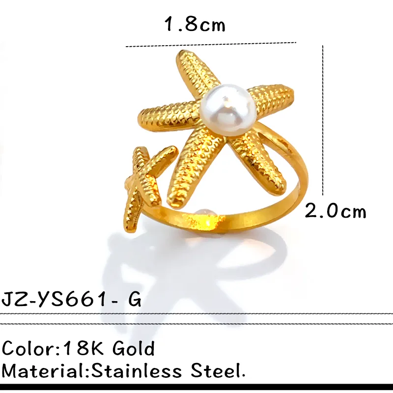 - Bague "Étoile de Mer Scintillante" : Un design audacieux et texturé d'étoile de mer, au centre duquel trône une perle lumineuse. Disponible en doré et argenté, souvent avec une petite étoile de mer en relief sur l'anneau.