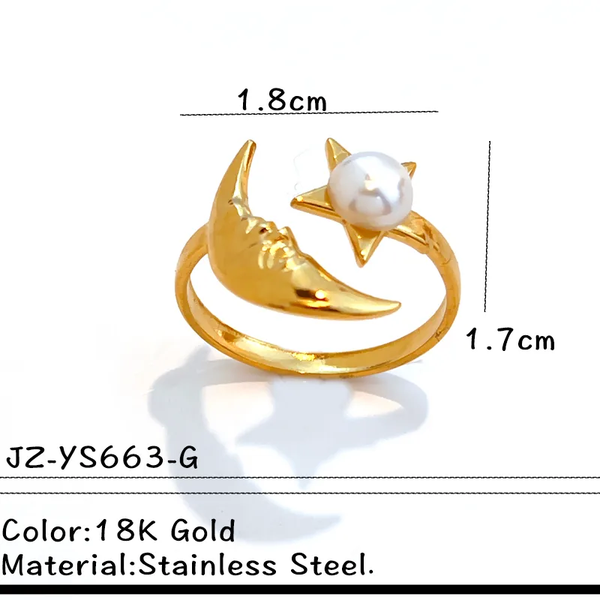 - Bague "Céleste Marine" : Un design poétique combinant une lune et une étoile (ou juste une étoile), chacune rehaussée d'une perle pour un éclat doux et mystérieux. Généralement en finition argentée ou dorée.