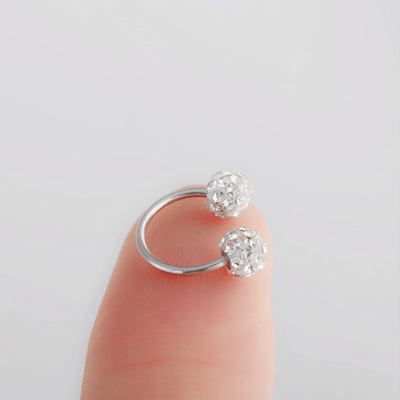- Strass Brillants : Chaque extrémité du barbell est ornée d'un zircon étincelant, offrant une brillance subtile mais captivante qui capte la lumière.