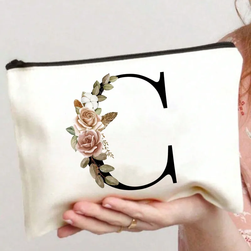 Trousse de Maquillage Femme Polyester Motif Lettres 22x14cm | Pochette Cosmétiques Chic & Compacte