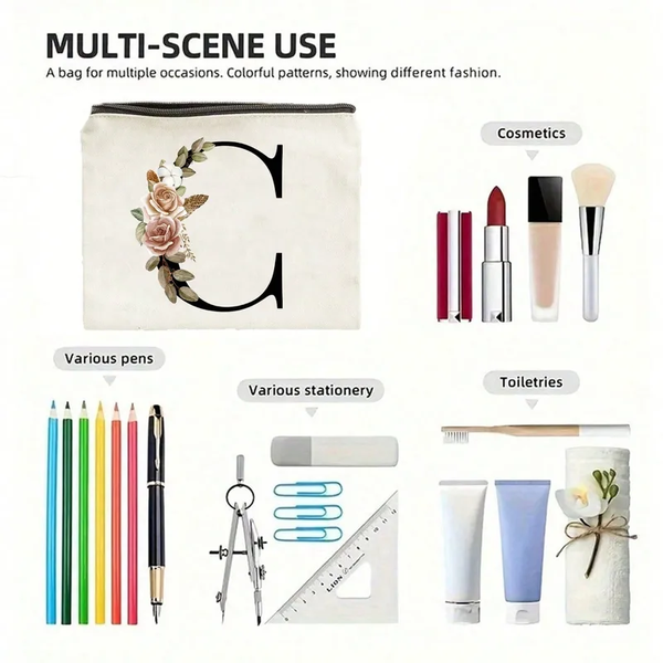 - Design Tendance : Motif lettres moderne et couleur [décrire la couleur principale de la trousse si visible sur l'image, ex: "beige et marron"] qui s'adapte à tous les styles.
