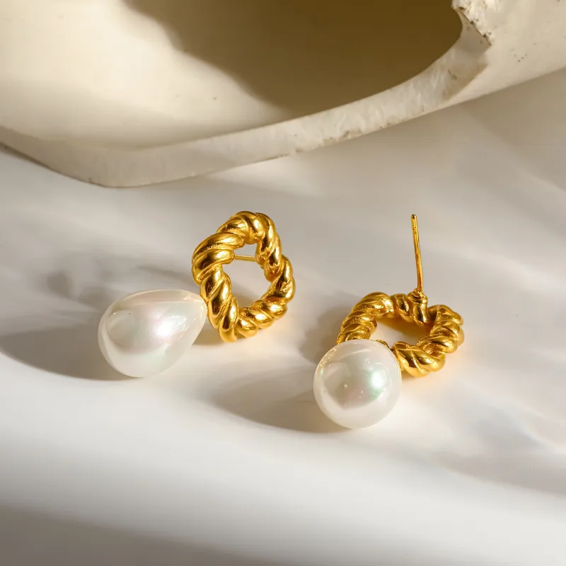 - Design Bi-matière Tendance : Le mix du carré géométrique torsadé et de la perle goutte est ultra chic.