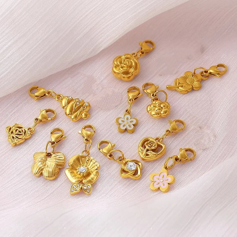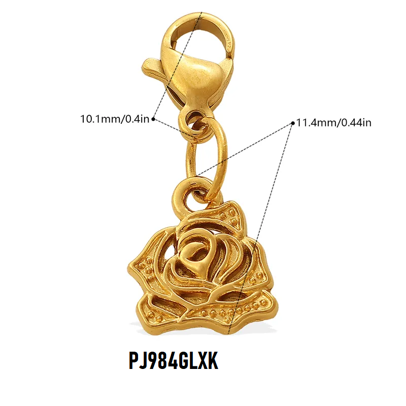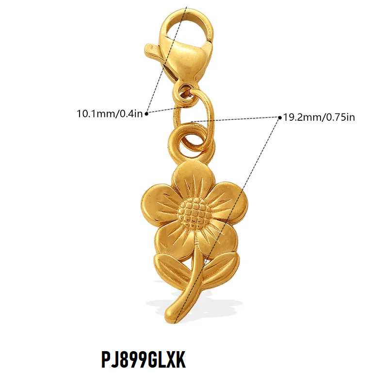 Charms Breloques Fleurs Acier Inoxydable Doré | Pendentifs à Mousqueton pour Bracelet & Collier | Vendu à l'Unité