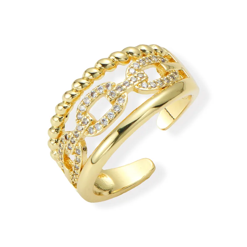 Bague Ajustable Femme 3 Anneaux Acier Inox 304 PVD Doré | Bague Large Ovale Zircon | Effet Stacking Tendance