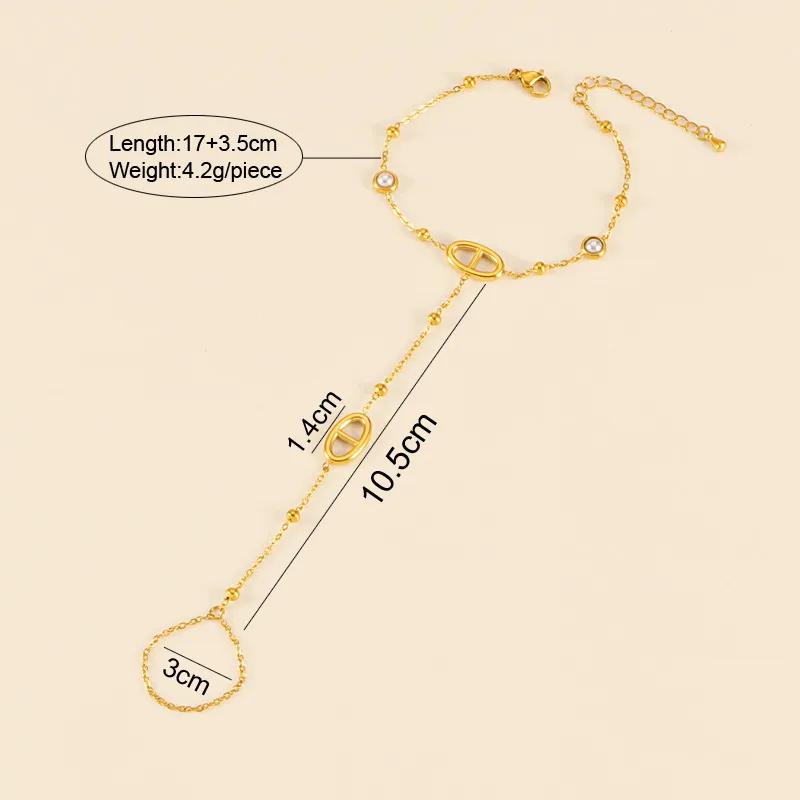 Bracelet de Main Chaîne Acier Inoxydable Doré | Hand Chain Femme Maillon Ovale & Zircons | Bijou Doigt Poignet
